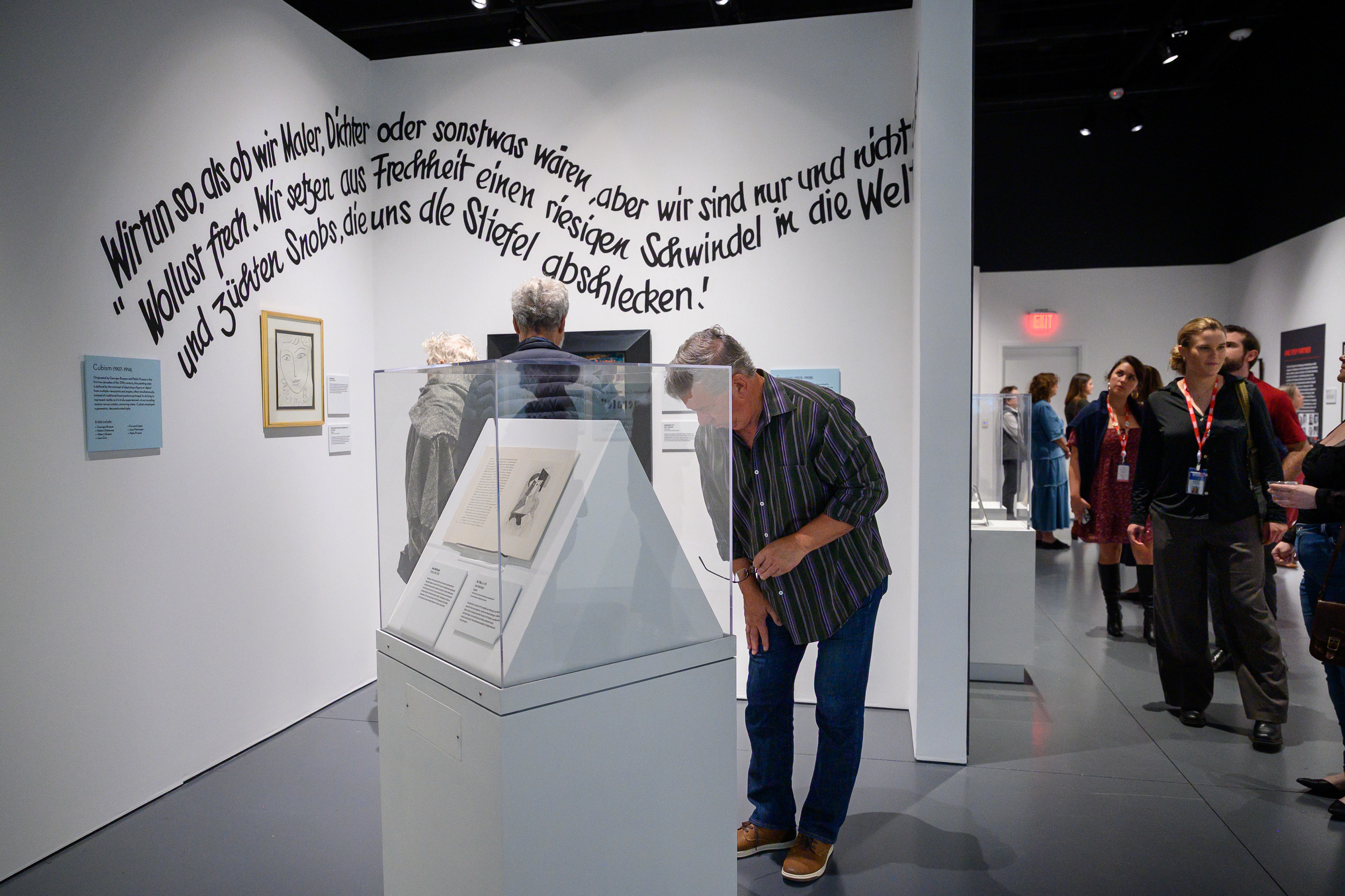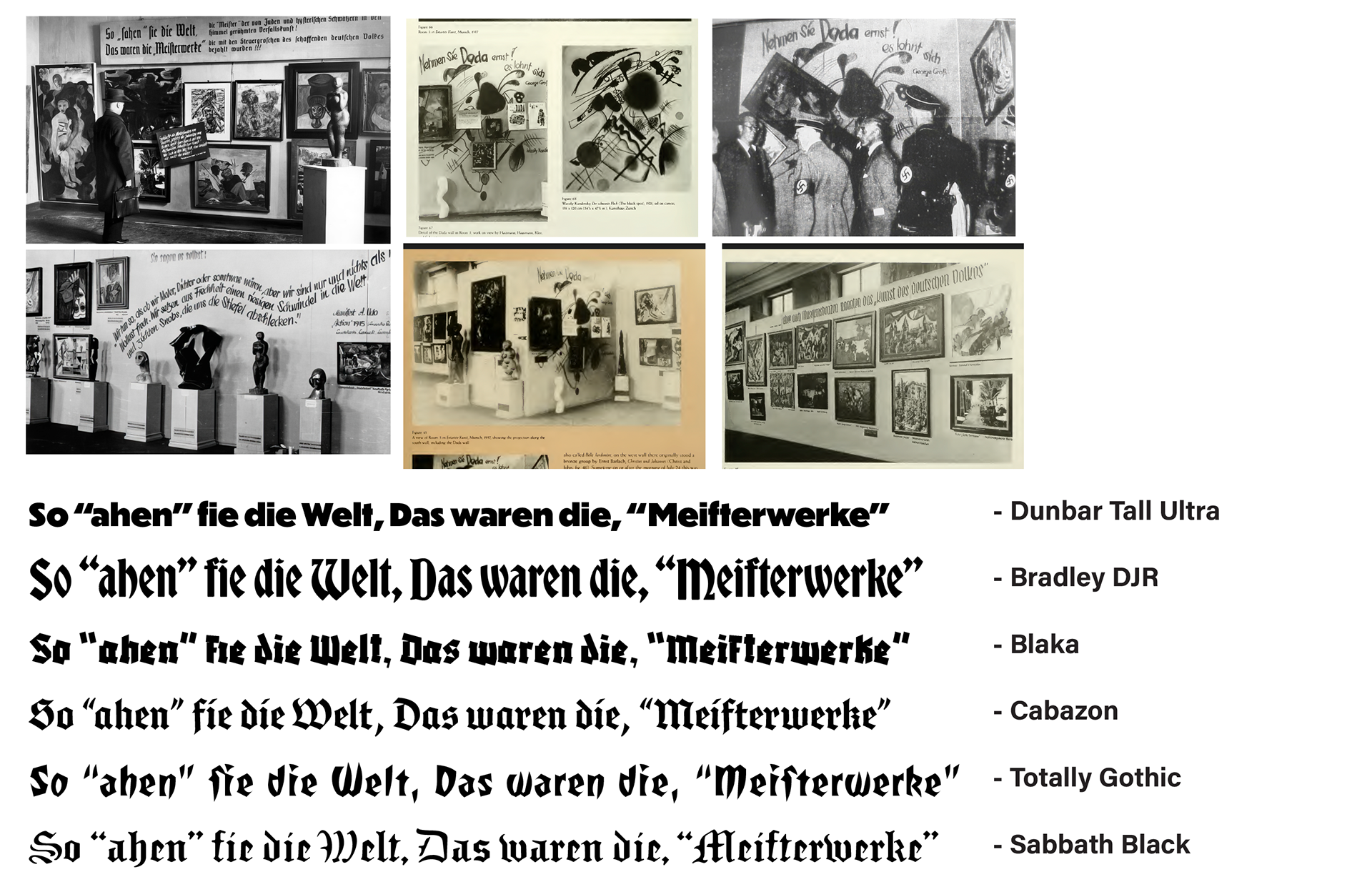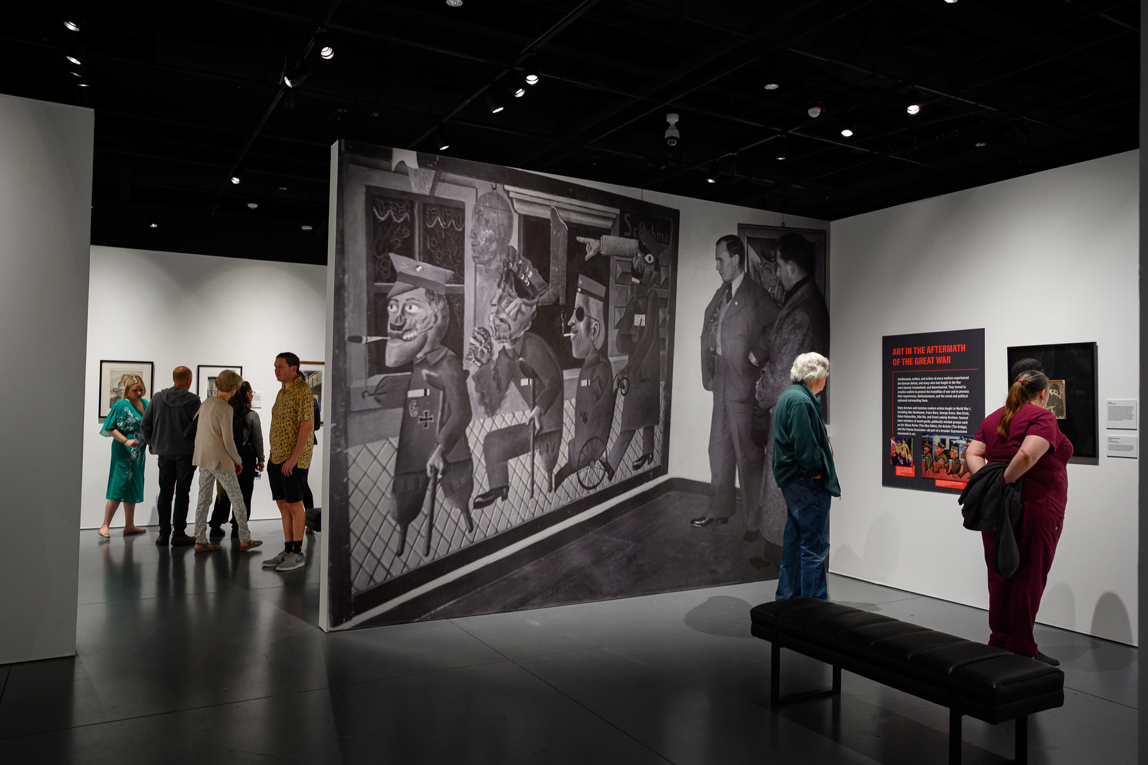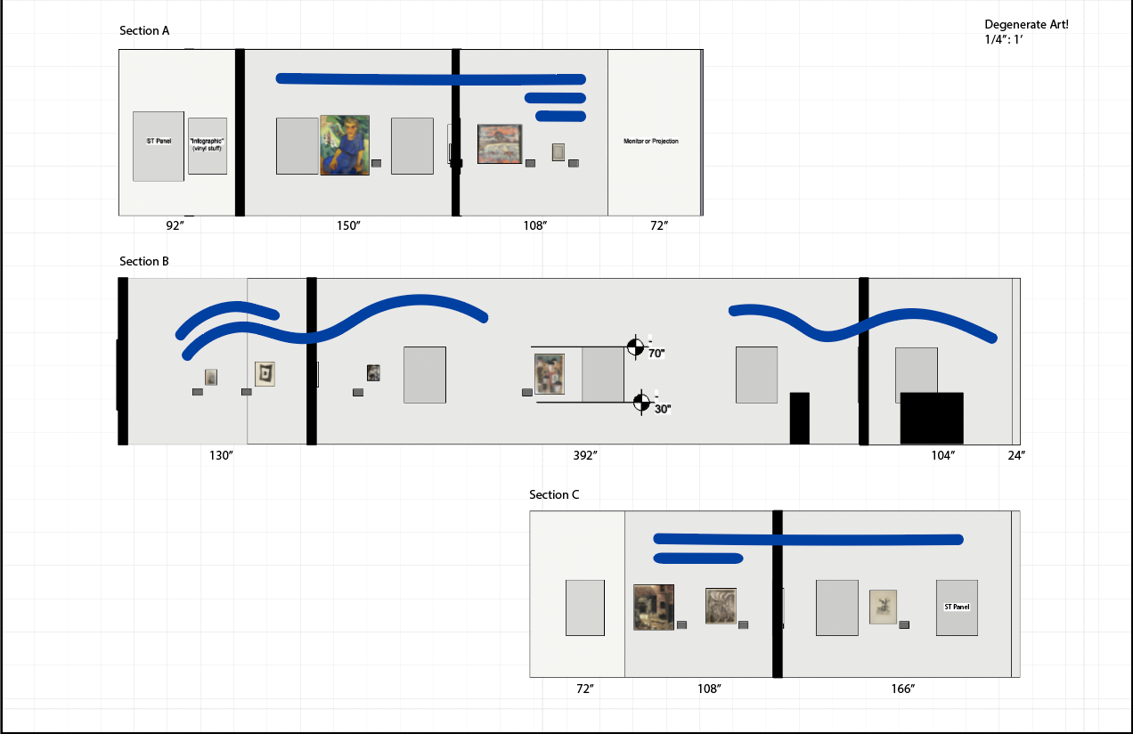 Originally created by and on loan from the Jewish Museum Milwaukee, this traveling exhibition, Degenerate! Hitlers War on Modern Art examined the Nazi campaign against modern art and music. It featured works by artists deemed “degenerate” by the Third Reich, as Nazi propaganda and public indoctrination weaponized nonconformist cultural expression during their rise to power. To better accomodate the gallery space, modifications were made to the original exhibitions’ floorplan, labels, timeline graphic, and narrative display. A replication of the actual 1937 exhibition, Entartete Kunst, can be found within the Degenerate! exhibit, giving the visitors a taste of how these artworks were displayed. Utilizing archival images from the 1937 show, the walls of the replicated exhibition contained hand-painted murals of messaging from the Nazi party. To provide the audience an interactive experience, a period-accurate stereo was used to share “degenerate” music via iPad and inset speakers. Visitors were able to share their thoughts on the exhibition in the comment books as they exited the exhibition. This traveling exhibition debuted in the Senator John Alario, Jr. Special Exhibit Gallery at The National WWII Museum.